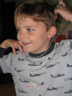 Easton was playing with his stickers today. He came to me and said, "Look Mom, I spelled my name!" If you look closely at his picture, he's spelled it out on his chest backwards.